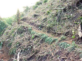 樹木や雑草を伐採した後の土地は、非常に肥沃を含んだ良い土壌になっていますが、その反面、崖のように傾斜角のキツイ土地でしかも、脆く崩れ易い土壌でもあります。