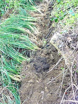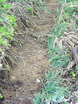 そこで、まず最初にすることは、この傾斜角のキツイ土壌に足場となるものを造る、ということになります。